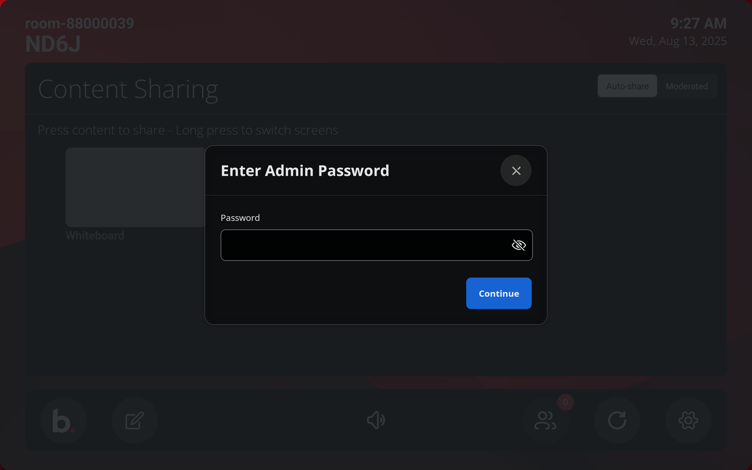 Tapping the .b button replaces the Content Sharing panel with the room connection information display.