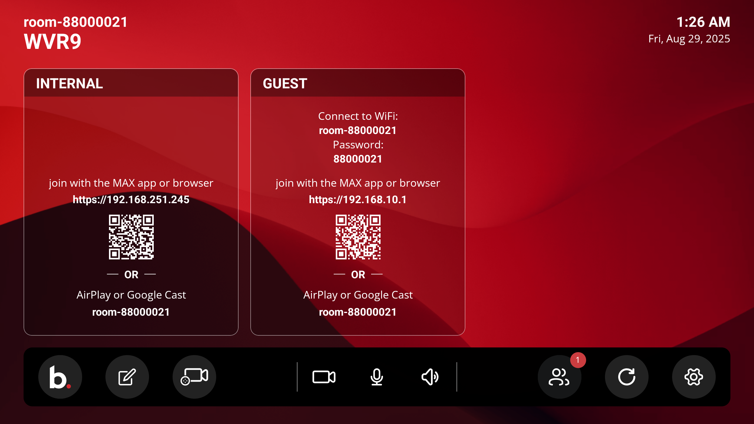- Room ID for connecting with AirPlay or Google Cast.